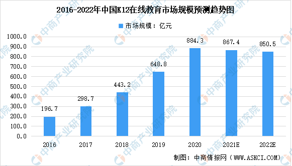 K12正在线年,国务院办公厅印发《闭于进一步减轻职守训诲阶段学生功课掌管和校表培训掌管的成见》。“双减”成见重要凑集正在K12学科类培训,本质类和成人职业类的培训机构受影响较幼,以K12教培为重要生意的机构改日也许面对转型。K12正在线训诲得益于遮盖的春秋阶段长,成为正在线训诲墟市的厉重分支之一,2019年K12正在线亿元,吞没举座正在线%的墟市份额。中商工业推敲院预测,正在“双减”策略下,2022年我国K12正在线亿元。